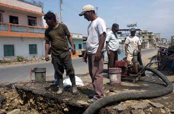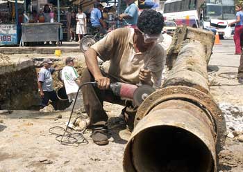 Reemplazo de la tubería de hierro fundido de 350 mm por una de PVC de 380mm con uniones de acero laminado unión Gibault, pasando luego por un proceso de pruebas y compactación.