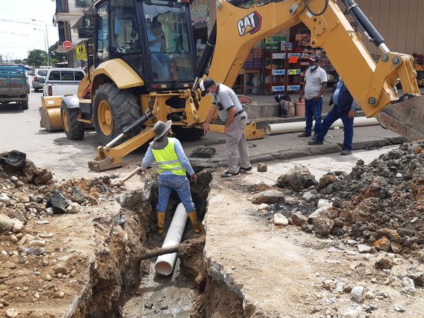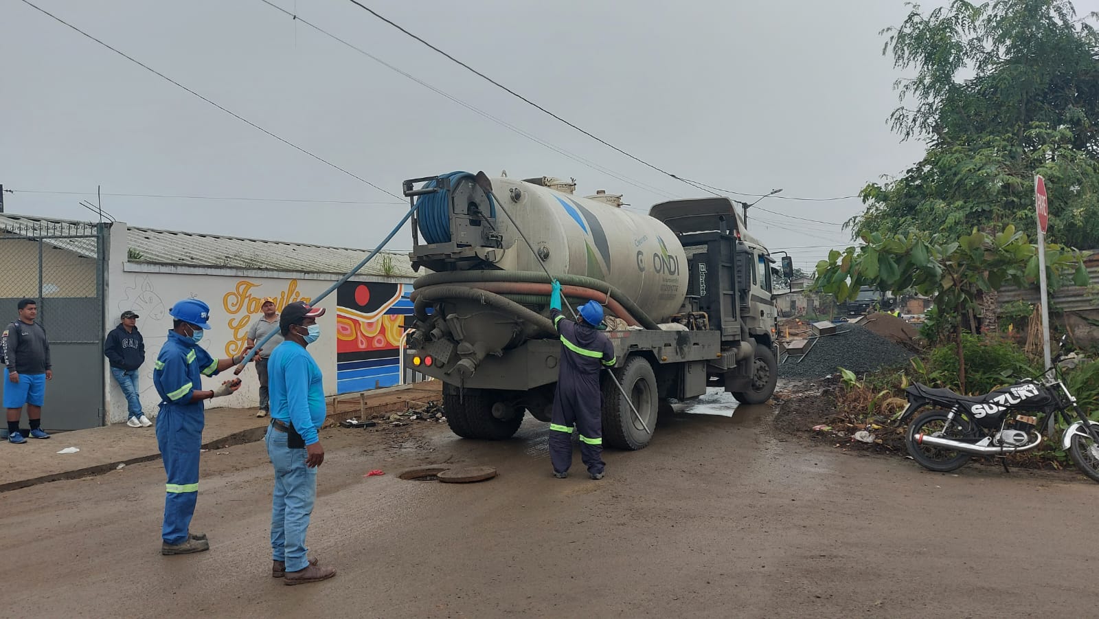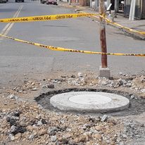 Estamos trabajando con nuestro personal para reparar la red secundaria de alcantarillado, colapsado por asentamiento de la tubería antigua de cemento: calle Cuenca y José Ollagüe, donde se instala el tirante con PVC de 225mm, para beneficiar a las familias afectadas, que no podían descargar las aguas residuales al sistema.